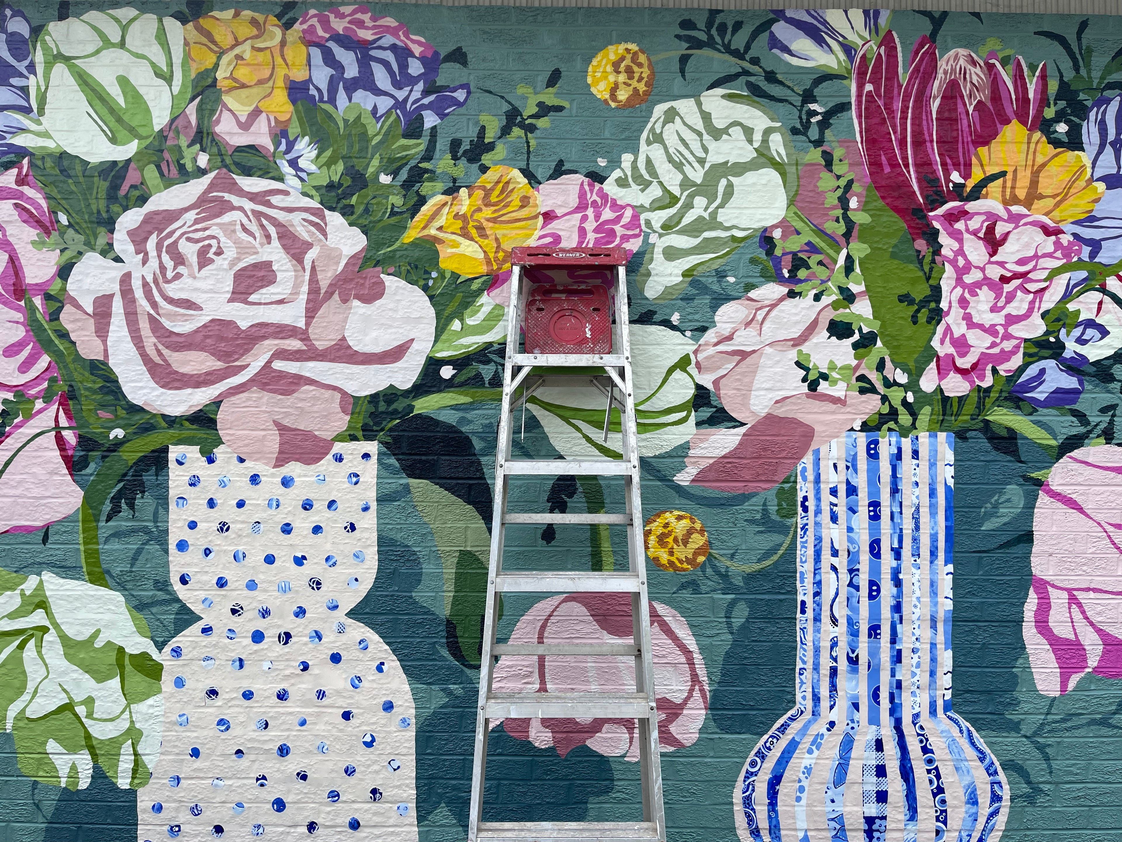 Murals for commercial, residential, and community spaces, I create colorful works that bring joy and reflect the character of the place and the people around it. Sometimes in collaboration with friends/other artists too!